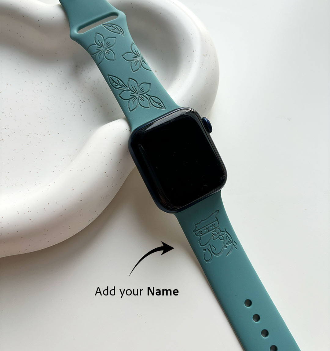 Custom Syria Apple Watch Band – Arabic Name Engraved with Floral Design