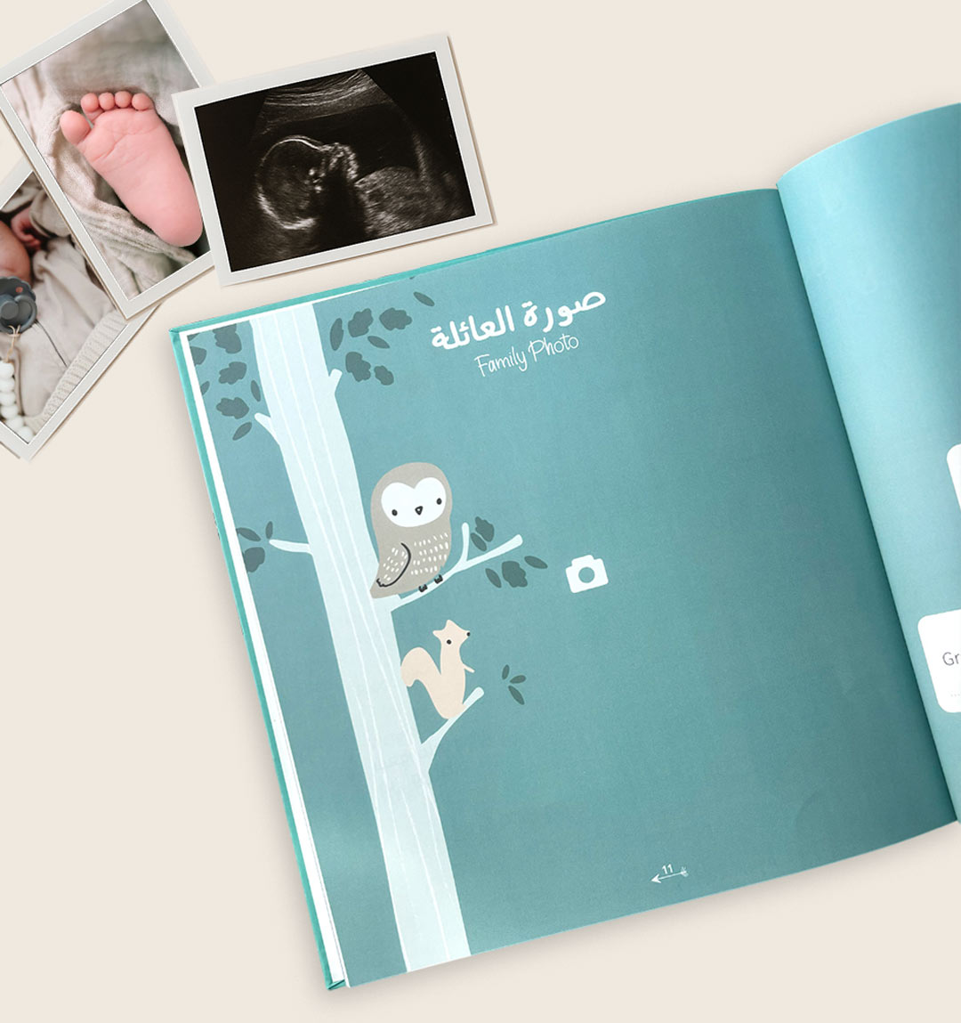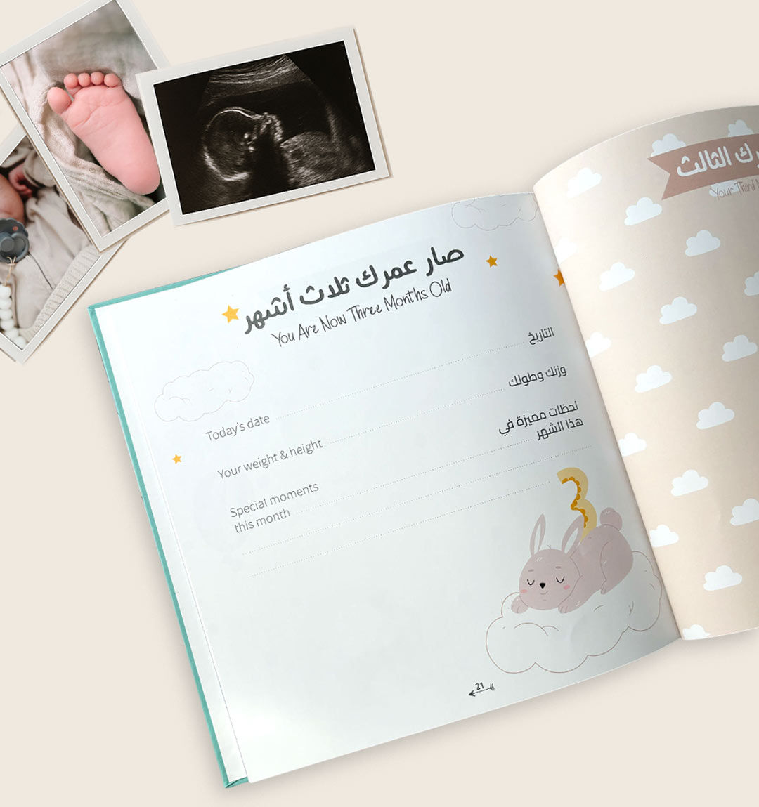 From the first heartbeat to the first birthday, this baby memory book is designed to help you preserve every milestone. With charming illustrations and bilingual pages in Arabic and English, it’s a heartfelt keepsake for families cherishing their baby’s early journey.