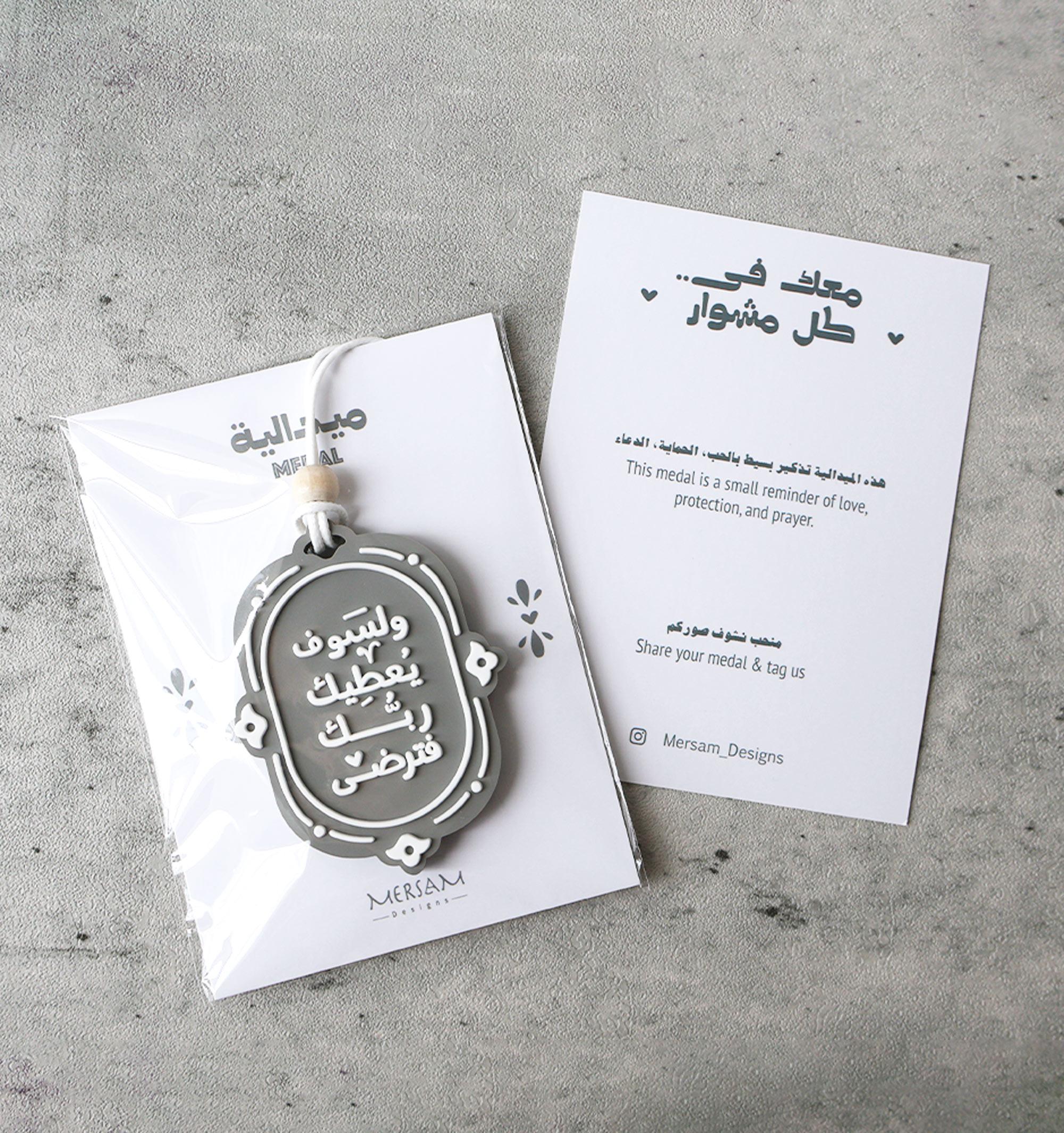 Designed with intricate patterns and Arabic calligraphy, this medal features the verse: “And your Lord will give you, and you will be satisfied”. It’s the perfect blend of faith and aesthetics, suitable for any car interior.